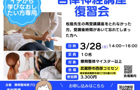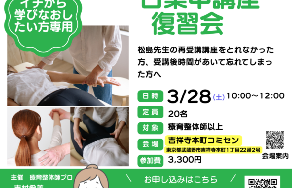 【東京吉祥寺】3月28日(土)復習会(療育整体師以上)
