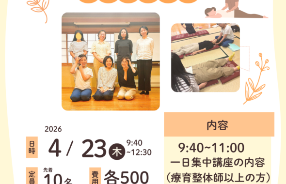 【東京吉祥寺】4月23日(木)療育整体師練習会