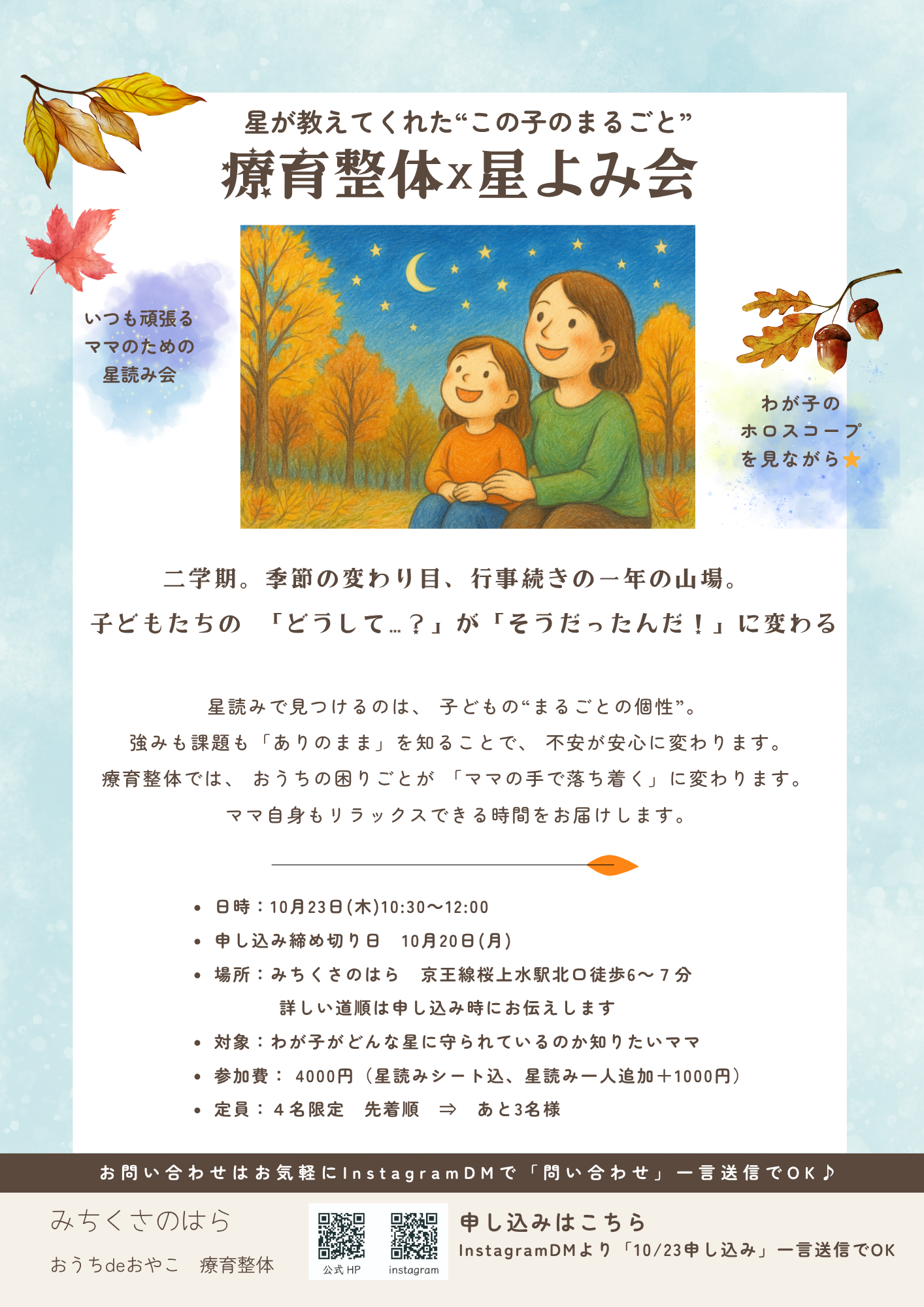 3. 【療育整体×星よみ会】10月23日(木)東京